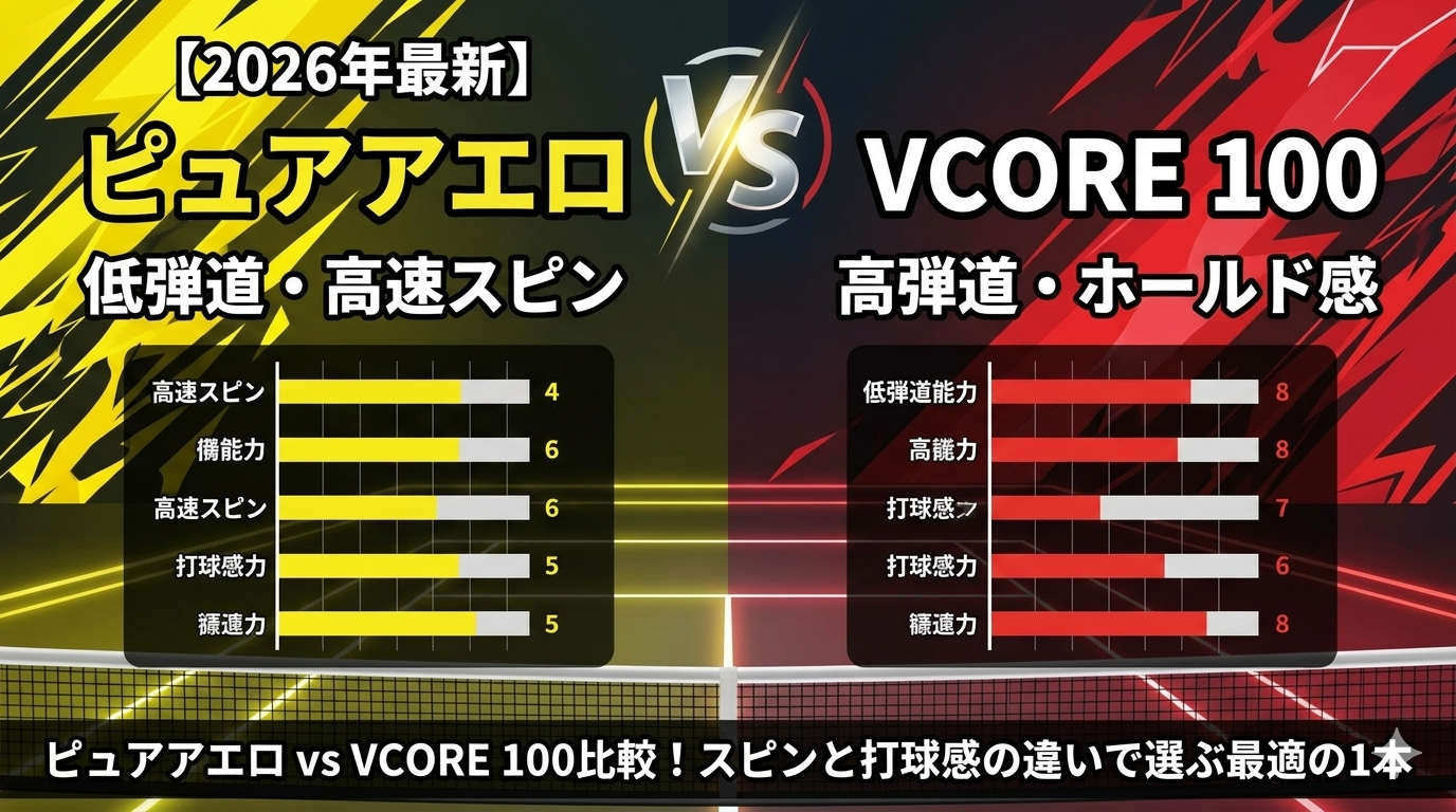 【2026年最新】ピュアアエロ 100 vs VCORE 100比較!スピンと打球感の違いで選ぶ最適の1本