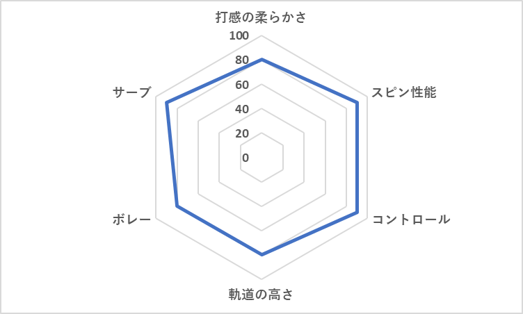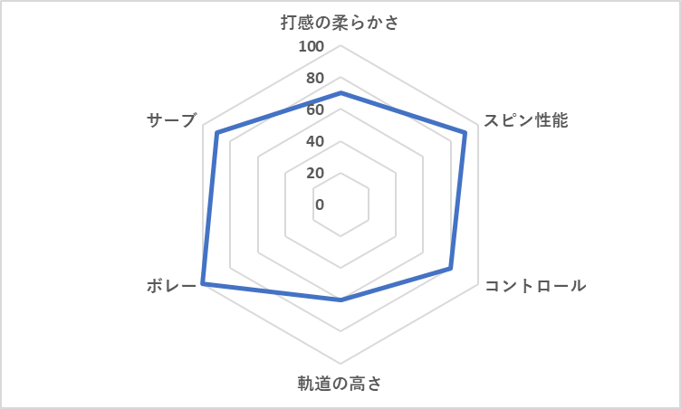 - サーブ:振り抜きが良く、ヘッドが走るため、フラットサーブの初速が上がります。スピンサーブの変化量も申し分ありません。