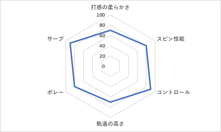 | ラケット名 | 飛び | スピン | コントロール | 打感 | おすすめ層 |